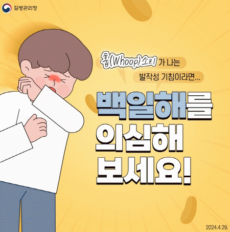 백일해는 제2급 법정감염병으로 백일해균 감염에 의해 발생하는 급성 호흡기 질환이다. 초기 눈물, 콧물, 경한 기침 등의 상기도 감염 증상이 나타나고 훕(Whoop) 소리가 나는 발작성 기침이 특징적인 질환이다.