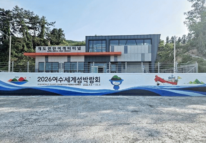 22일 여수시는 여수벽화쟁이봉사단(대표 신을식)이 지난 20일 화정면 개도 연안여객터미널 벽면에 2026여수세계섬박람회 홍보 벽화를 완성했다고 밝혔다.