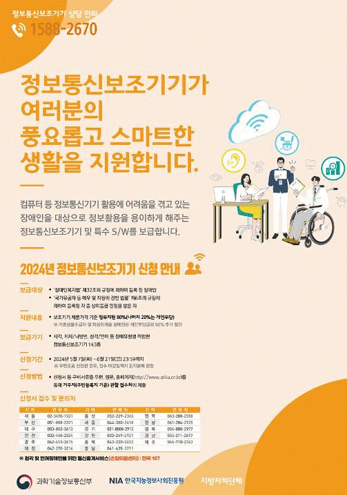 시 관계자는 “정보통신보조기기 보급으로 장애인 분들이 쉽게 정보에 접근하고 활용하실 수 있길 바라며, 장애인의 정보격차 해소를 위해 지속적으로 노력하겠다”고 전했다.