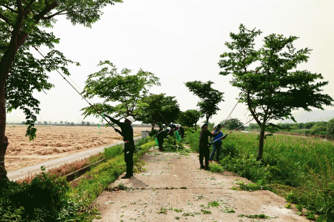 특히, 기울어진 나무, 넘어질 우려가 있는 위험 수목을 우선 정비하고, 동력 전지톱 등을 활용해 시야 및 경관을 저해하는 도장지(웃자람가지)의 가지치기를 실시해 지역주민 및 농경지 경작자들에게 좋은 반응을 얻고 있다.