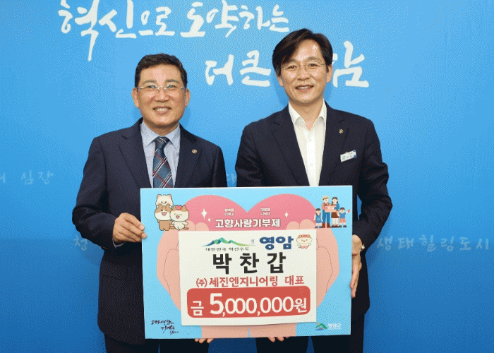지난해 덕진면민의날에도 고향사랑기금 500만원을 기부한 박 대표는 “영암 어르신 영화관람 등 좋은 일에 기금을 사용하는 것을 보고 뿌듯했다. 더 많은 기금 사업으로 영암 어르신들을 즐겁게 해주길 바란다”고 전했다.