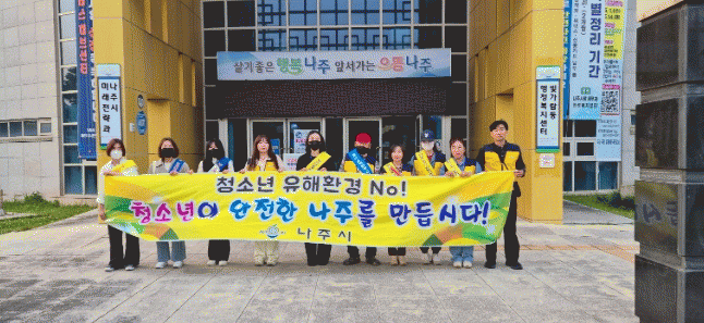 나주시는 전라남도, 경찰서, 청소년유해환경감시단과 합동으로 청소년보호법 위반 사항 점검 및 단속, 청소년 보호 관련 유인물 및 청소년 유해표시 준수 스티커 부착 등 정화 활동을 진행했다.