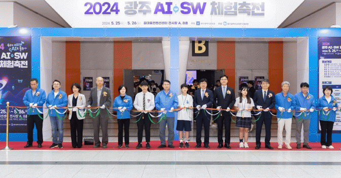 26일 교육연구정보원에 따르면, AI·SW체험축전은 ‘우리의 미래, AI로 물들다’를 주제로 이뤄졌다. 개막식에 앞선 커팅식을 시작으로 초등 남교사 4명으로 구성된 보컬팀 ‘티보이스’의 식전공연, 광주소프트웨어마이스터고등학교에서 준비한 로봇 군무 축하 공연이 이어졌다. 이정선 교육감의 환영사를 비롯하여 학생, 교사, 지역대학 총장, 자치단체장 등 광주의 교육공동체도 이번 축전을 축하하는 인사말을 전했다.