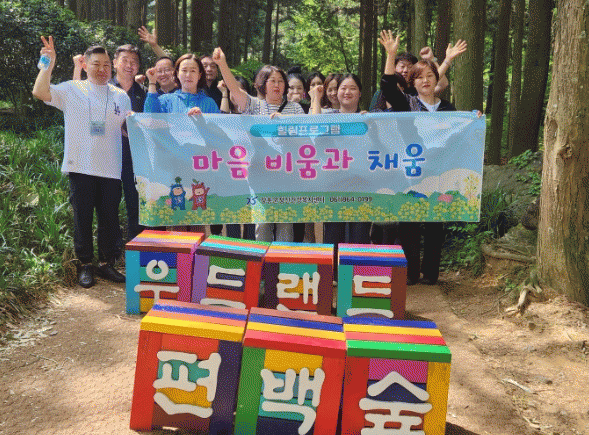 프로그램은 산림치유사와 함께 피톤치드 가득한 편백숲 톱밥길 맨발걷기, 해먹 쉼, 마음사랑 도장만들기 등 체험활동과 마음건강교육으로 진행됐다.