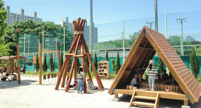 서구는 우선 큰 나무로 가려져 있던 놀이터 진입로를 확보해 접근성을 높이고 나무소재의 자연친화 놀이시설물을 설치했다. 어린이들이 흙을 만지며 정서적 안정과 감수성을 느낄 수 있도록 모래 놀이터를 만들고 활발한 신체놀이를 위한 통나무건너기, 오르기놀이대, 인디언텐트, 놀이하우스, 바구니그네 등을 설치했다.