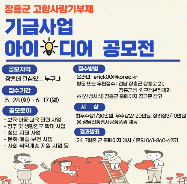 제안서는 장흥군청 인구청년정책과로 방문 또는 우편·이메일 접수로 하면 된다.