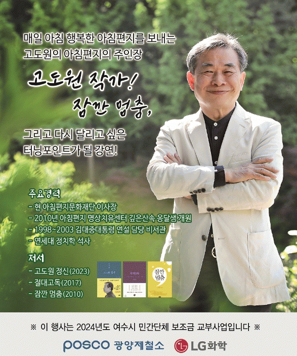 한편, 여수아카데미 시민교양강좌는 매월 1회 각 분야의 전문가를 초빙 강연을 듣는 평생학습 프로그램으로, 사전 신청 없이 시민 누구나 무료로 참여할 수 있다.