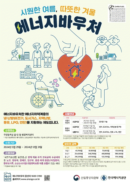 이번 2024년도 에너지바우처 지원 금액은 1인 세대 295,200원, 2인 세대 407,500원, 3인 세대 532,700원, 4인 이상 세대 701,300원으로 지난해 대비 평균 지원금이 15,000원가량 인상됐으며, 사용기한도 2025년 5월 25일로 1개월가량 연장됐다.