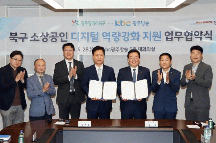 28일 북구에 따르면 이날 오전 10시 KBC 광주방송국 5층 대회의실에서 북구와 KBC가 소상공인 온라인 마케팅 강화에 맞손 잡고 ‘소상공인 디지털 역량 강화 지원 업무 협약’을 체결했다.