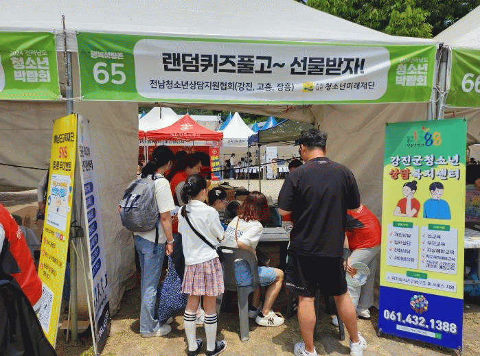 행복성장존에 설치한 ‘랜덤퀴즈 풀고~선물받자!’ 활동 부스에서는 미디어 과의존으로 어려움을 겪는 청소년을 대상으로 간이 심리검사를 진행하고, 학교 밖 청소년에 대한 인식개선 활동을 펼치며 간단한 퀴즈와 함께 청소년들에게 간식 선물을 제공했다.