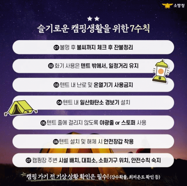 아울러, 소방서 관계자는“캠핑 시 일산화탄소 경보기를 항상 구비하고 안전 수칙을 준수하여 소중한 사람들과 안전한 캠핑 추억을 만들기를 바란다.”고 밝혔다.