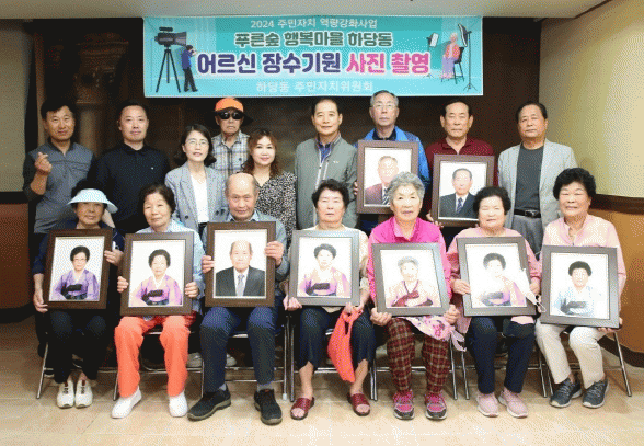 이번 행사는 주민자치 역량강화사업의 일원으로 하당동 내 80세 이상 어르신 40명을 초대해 진행했으며 촬영된 사진은 액자로 제작돼 어르신들에게 전달됐다.
