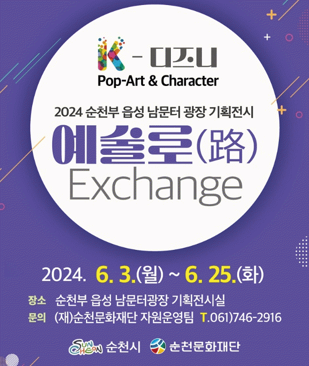 기획전시 예술로(路) Exchange는 남문터광장 활성화 프로그램이다. 6월을 시작으로 총 4회에 걸쳐 진행되며, K-디즈니, 업사이클, 정크아트, 생태, 웹툰 등 다양한 소재를 기반으로 한 작가들이 참여하여 작품을 전시할 예정이다.