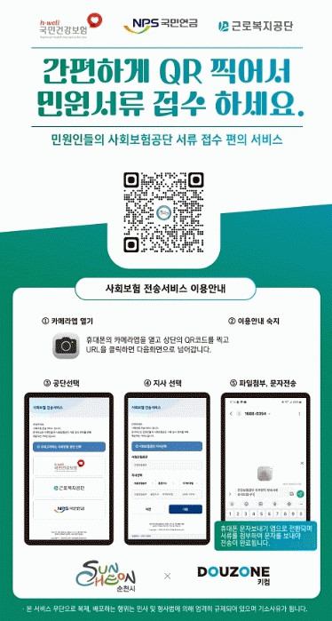 이 서비스는 민원인이 서류를 발급하여 스마트폰으로 사진촬영 후 QR코드를 찍으면 해당 사회보험공단에 바로 전송하는 시스템이다.