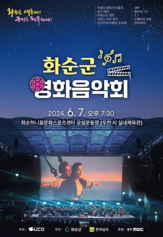 오케스트라 공연은 '2024년 화순군 지역대표 공연예술제 일환으로 MBC가 1969년부터 2010년 방영했던 ‘주말의 명화’에서 잘 알려진 명화 OST를 엄선해 무대 뒤 백스크린에 그때의 영화 명장면이 나타나면서 오케스트라를 공연하는 명화 OST 음악회이다.