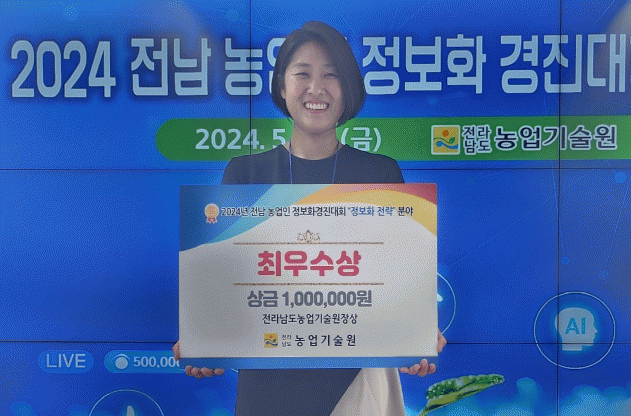 이번 성과는 지난해 전남 농업인 정보화경진대회 정보화 전략 분야에서 대상(윤영진), 라이브커머스 분야에서 최우수상(김요나, 박정웅) 수상에 이어진 두 번째 쾌거이다.
