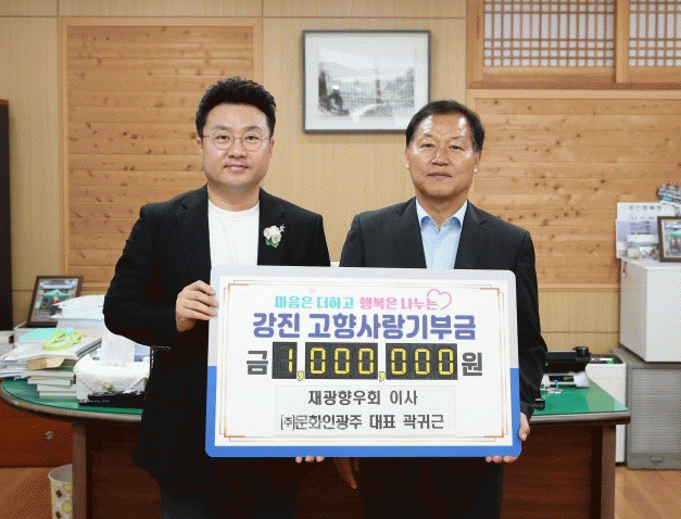 서순철 강진부군수는 “고향에 따뜻한 온정의 손길을 내밀어 주신 곽귀근 이사님께 감사드린다”며, “기부금을 통해 기부자와 주민들이 공감할 수 있는 고향사랑 기금사업을 추진하고 강진군과 기부자 간에 지속적인 관계를 구축해 나가겠다”고 말했다.