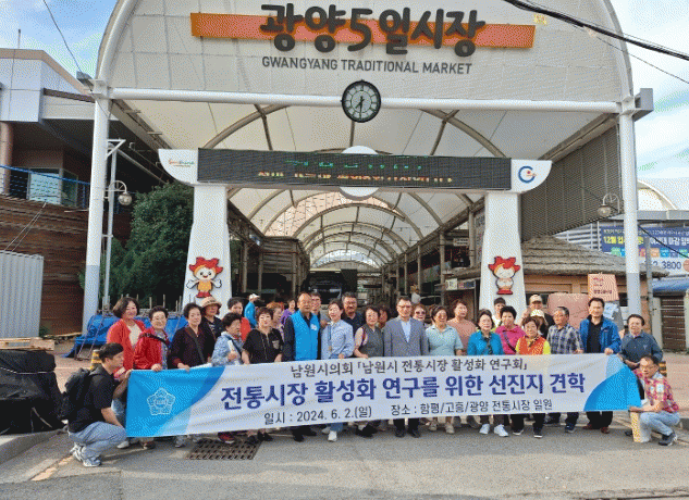 지난해 상반기에 결성된 남원시의회 ‘전통시장 활성화 연구회’는 지역 전통시장에 대한 진단 및 발전 방향을 모색하고 관광형 전통시장 모델 발굴을 위해 활동하고 있으며, 남원시의회 의원 등으로 구성돼 있다.