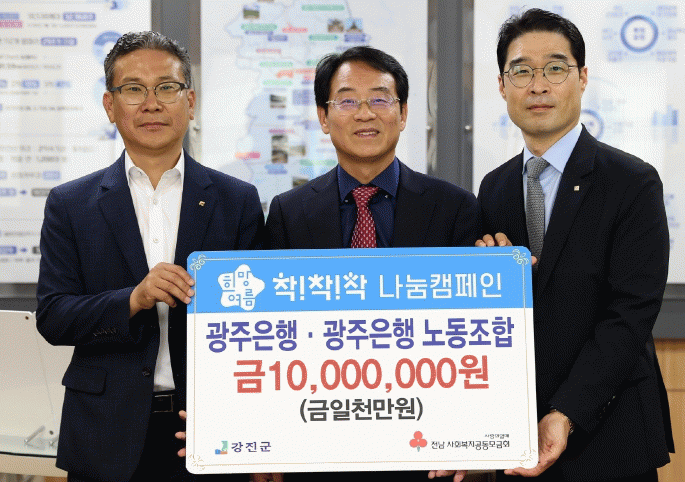 이날 기탁식에는 광주은행 김종훈 부행장과 김종진 강진지점장이 참석해 기부금을 전달했다.