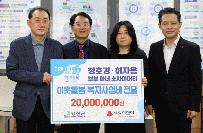 강진원 강진군수는 “어려운 시기에 나눔을 실천해 준 두 분께 감사드린다”라며 “행정의 힘이 닿지 않는 사각지대까지 살필 수 있는 것이 바로 기부의 손길이다. 두 분의 나눔으로 더 따뜻한 강진을 만들 수 있도록 노력하겠다”고 밝혔다.