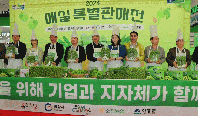 이날 행사는 대한민국 명품 매실의 주산지인 광양시를 비롯해 매실을 많이 생산하는 인근 시군(순천시, 하동군)과 ㈜홈앤쇼핑 등이 후원해 매실 특별 판매전을 진행한다.