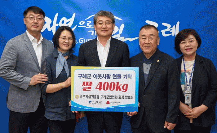바르게살기운동 구례군협의회는 지난 5월 30일 회장 이․취임식 행사 때 화환 대신 받은 쌀을 어려운 이웃을 위해 기탁했다.