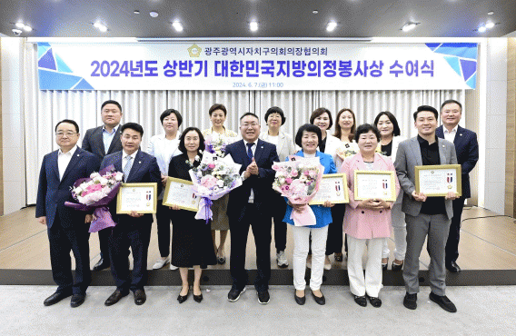 지방의정봉사상은 지방자치와 지역사회 발전을 위해 공헌한 지방의원에게 수여하는 상으로 주순일 의원은 대한민국시군자치구의회의장협의회장상을, 기대서‧김귀성‧김영순‧임종국 의원은 광주광역시자치구의회의장협의회장상을 수상했다.