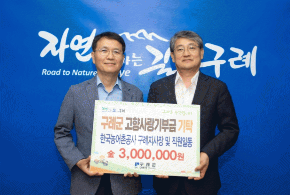 김순호 구례군수는 “고향사랑 기부제를 통해 지역 사랑에 앞장서준 농어촌공사에 깊은 감사를 드리며, 공사의 역할이 구례군과 지역민들의 생활에 미치는 영향이 큰 만큼 지역발전과 문제해결을 위해 최선의 노력을 다해달라”는 부탁의 말을 전했다.