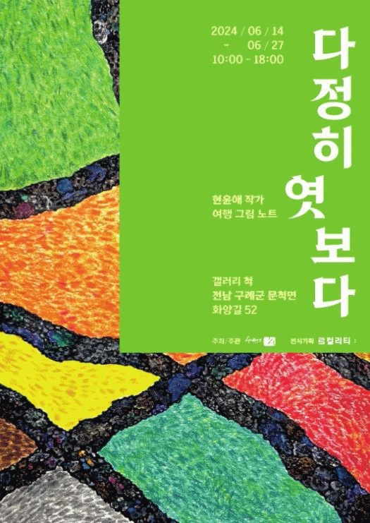 화가 현윤애의 여행그림展 '다정히 엿보다'는 구례와 제주의 수 갈래 길을 걸으며 스쳐 지나가기에는 아쉬운 풍경과 순간들을 담은 그림을 선보이는 전시이다.