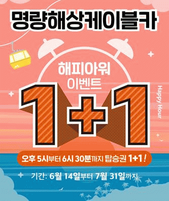 전라남도 서남부권의 대표적인 가족여행지인 명량해상케이블카에서는 오는 6월 14일부터 오후 5시부터 영업종료 시간인 오후 6시 30분까지 방문하는 고객들에게 1+1 해피아워 이벤트를 실시한다고 밝혀왔다.