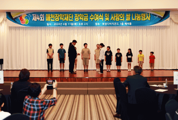 이번 수여식에서는 보성군 소재 유치원, 초중고등학교에 재학 중인 430명에게 1억 3천만 원의 장학금을 지급하고 도서 2,000권, 사랑의 쌀 4,200kg, 감자 3,000kg을 전달했다.