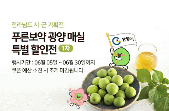 이번 온라인 기획전은 전남 농수축산물 온라인 쇼핑몰 ‘남도장터’ 내 시·군 상생장터 '광양시 상생장터'에서 진행되며, 오는 30일까지 청매실, 매실청, 매실장아찌 등 매실 관련 상품을 30% 할인된 가격에 판매하고 있다.