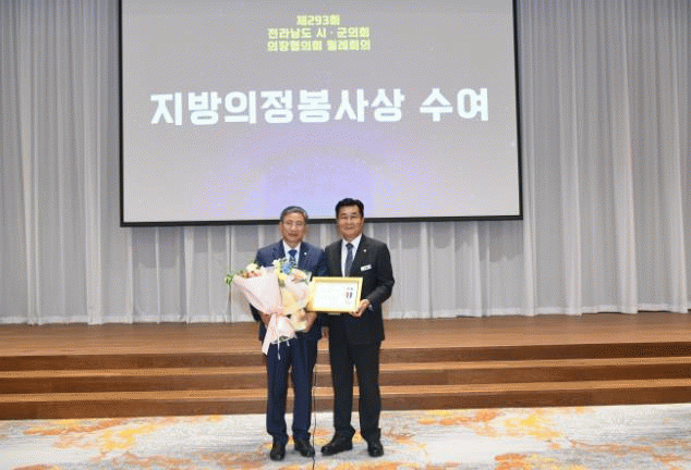또한, 제9대 전반기 나주시의회 의장직을 수행하면서 의회의 목소리를 한곳으로 모으는데 힘쓰고 시민의 복리증진과 시정발전을 위해 직무를 수행한 점을 높이 평가받아 이번 상을 받게 됐다.