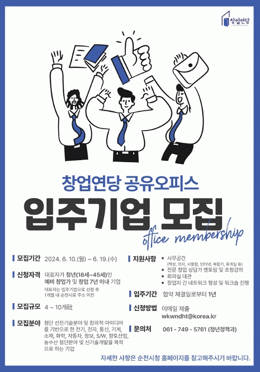 올 하반기에는 대표자가 청년(18세 부터 45세)인 예비 창업가 또는 창업 후 7년 이내 기업을 대상으로 4 부터 10개사를 모집하고 있다.