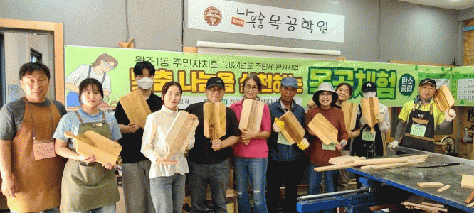 ‘맞춤나눔을 실천하는 목공체험’은 주민세 환원사업의 일환으로 문화예술체육분과(분과장 하정애)에서 매주 목·토에 다양한 목재 기술 등을 익혀 출생 축하용품 선물 꾸러미를 만드는 프로그램이다.