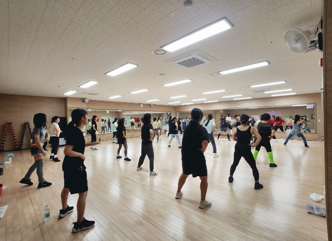 강좌 일정은 ▲에어로빅 주 4회(화, 수, 목, 금) 일 3회(9시, 10시, 20시) ▲요가 주 3회(화, 수, 금) 일 4회(11시, 12시, 17시, 18시 30분) ▲라인댄스 주 3회(화, 수, 금) 일 2회(10시, 11시)이다.