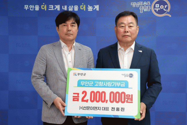 이날 군수실에서 열린 기탁식에 참석한 전홍진 대표는 “올해 시행 2년 차를 맞이한 무안군 고향사랑기부제의 지속적인 활성화를 위한 노력에 힘을 보탤 수 있게 되어 기쁘게 생각한다”며 “앞으로도 큰 관심을 가지고 적극 응원하겠다”고 말했다.
