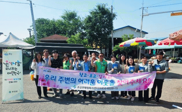 한편, 조성면에서는 ‘조성면민과 함께하는 행복한 동행’ 사업을 통해 찾아가는 복지상담, 건강상담(혈압·혈당 체크), 복지 사각지대 발굴 등에 힘쓰고 있다.
