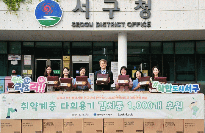 서구는 최근 ㈜락앤락으로부터 김치통 1000개를 지원받았다. 이는 서구 혁신정책개발 연구모임 ‘탄소락(LOCK)&락(樂)’의 전화 한 통에서 시작됐다. 이 팀은 기후위기 대응방안을 모색하는 연구모임으로 6~7급 공무원 6명(박문광, 문영화, 이지은, 신은정, 허경숙, 박시영)이 ‘탄소는 잠그고 즐거움을 더한다’는 뜻에서 ‘탄소락(LOCK)&락(樂)’ 이름으로 활동하고 있다.