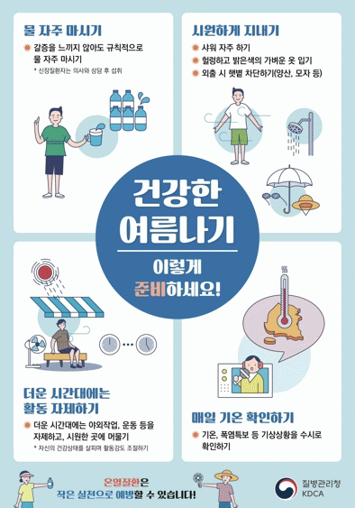 또한 안전하고 건강한 여름나기를 위해 ▲물 자주 마시기 ▲그늘 찾아 시원한 상태 유지하기 ▲더운 시간대 활동 자제하기 ▲기상 상황을 수시로 확인하기 등 폭염 대비 건강수칙 준수를 적극 홍보하고 있다.
