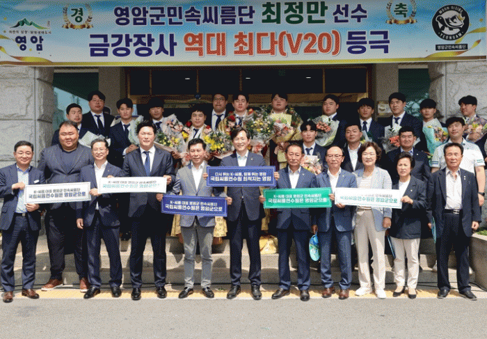 우승희 영암군수는 “K-씨름 역사에서 전무후무한 기록을 쓴 최 장사에게 큰 박수를 부탁한다. 해마다 영암군민속씨름단이 단오대회에 강했는데, 이번에도 3체급을 석권해 영암이 K-씨름의 중심임을 확인했다”고 반겼다.