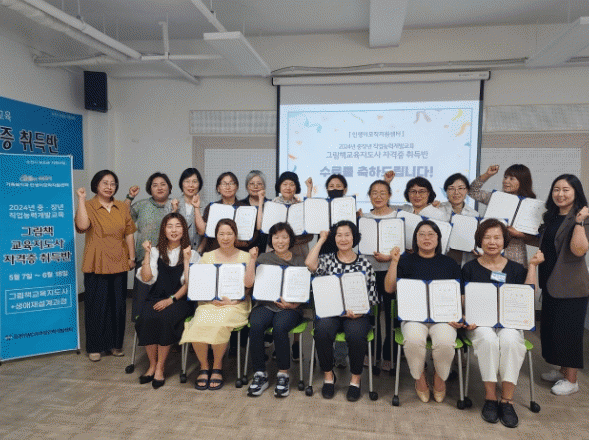 수료생 14명은 오는 7월 20일 광주광역시 소재 호남대학교에서 사단법인 한국그림책문화협회가 주관하는 그림책교육지도사 3급 자격증 시험에 응시할 예정이다.