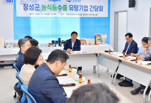 간담회에는 농식품 수출 활성화를 희망하는 장성지역 유망 식품가공업체 20여 곳이 참석해 김한종 장성군수와 애로사항, 수출 확대 지원방안에 대해 심도 있게 소통했다. 해외시장 현황, 수출 성공사례 공유 등 수출 추진 과정에 실질적인 도움이 되는 주제도 다뤘다.
