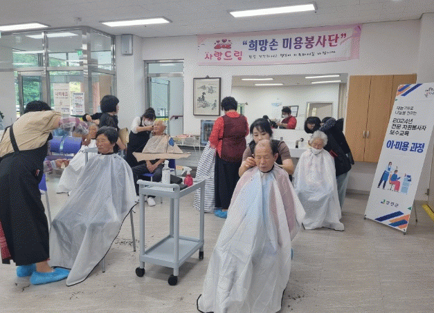 지난해 8월 결성된 희망손 봉사단은 매월 1회 이상 노인복지시설을 방문해, 이미용 봉사를 꾸준히 펼치고 있으며, 현재 강진군에서 실시하는 전문자원봉사 보수 교육과정을 이수 중으로 자원봉사자의 전문성을 더욱 강화하고 있다.