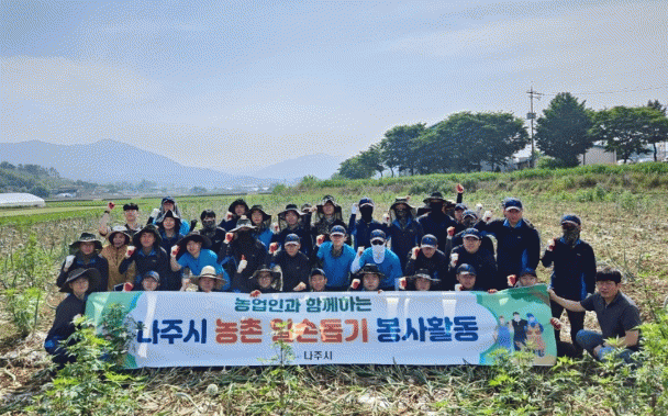 전라남도 나주시는 5월 배농가에 이어 이 달에도 민·관·군이 함께하는 ‘농촌사랑 일손 돕기’를 추진했다고 19일 밝혔다.