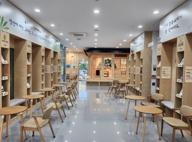 푸른마을공동체센터 1층 로비에 위치한 ‘푸른마을 살롱’은 주민 편의 증진과 함께 마을 자치 정보교류 활성화를 목적으로 마련됐다. ▲마을 아카이브 공간 ▲마을사랑채 전시관 ▲주민 갤러리 ▲주민 쉼터 등으로 구성됐으며 13개 동별 특색을 한눈에 볼 수 있다는 것이 특징이다.