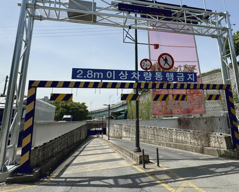 지하차도 자동 차단 시스템은 AIoT 기반 침수 대응 모니터링을 통해 지하차도 내 수위를 실시간 관제하고 일정 수준 이상 수위가 올라 침수 우려가 있는 경우 차단막 원격 제어로 지하차도 진입을 봉쇄하여 인명·재산 피해를 예방하는 시설이다.