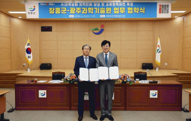 이날 협약식에는 임기철 광주과학기술원 총장, 김성 장흥군수, 왕윤채 장흥군의회 의장 등 100여 명이 참석했다.