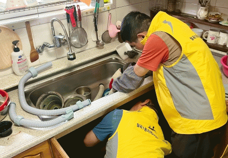 월곡1동 지사협 위원들은 이날 지역 내 혼자 사는 어르신 40세대를 방문, 오랫동안 청소하지 않아 음식물 찌꺼기가 쌓이고 곰팡이가 핀 싱크대 배수관을 직접 청소하고 배수관을 교체했다.