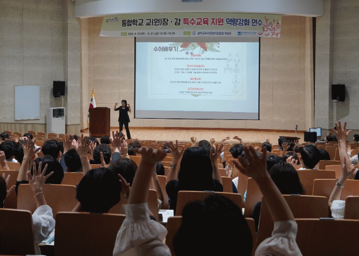 연수는 장애이해 및 통합교육 전문 강사를 위촉해 이뤄졌다. 광주광역시 장애복지관 김지애 수어 통역사는 ‘장애인권 이해를 통한 통합 교육 역량 신장’을 주제로 한 강의에서 청각장애인의 삶과 소통, 청각장애 학생에게 적절한 특수교육 지원 방안 등을 안내했다.